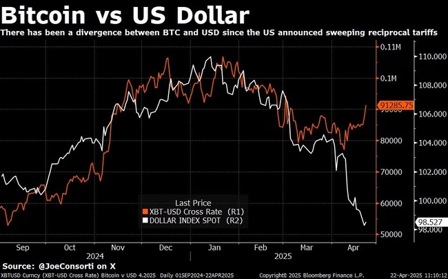 Market analysts attribute Bitcoin’s performance to its growing perception as a digital macro hedge, similar to gold, amidst de-globalization trends and capital flight from volatile equity markets. The cryptocurrency’s resilience is highlighted by its recovery from recent lows, with futures open interest rising 10.8% and its correlation with stocks dropping to 0.56, outperforming traditional risk assets. This surge has been notable since Trump’s ‘Liberation Day’ tariff announcements.