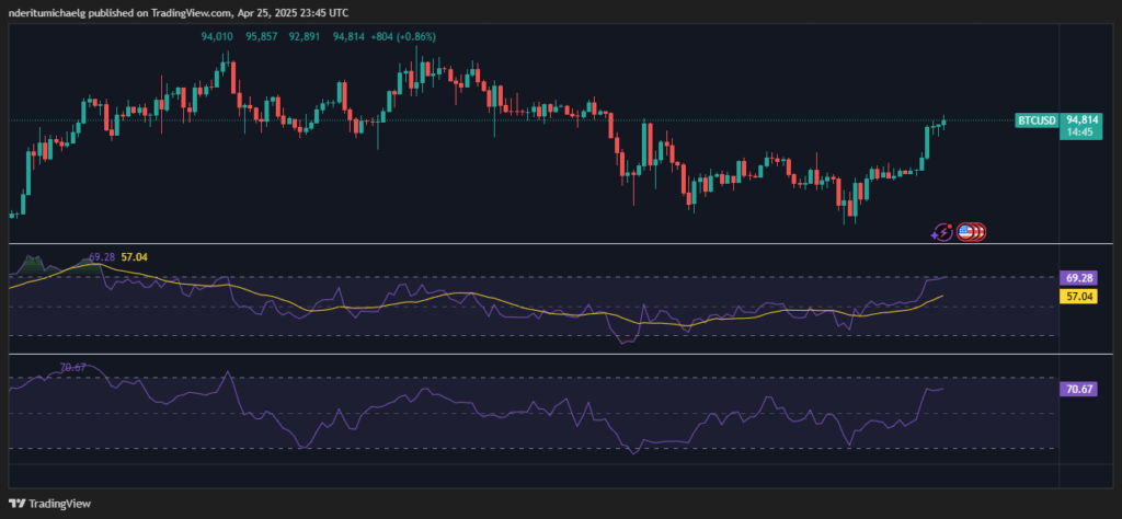 As noted earlier, Bitcoin’s upside slowed considerably in the last 3 days. This is an important observation because price also pushed into a short term resistance zone above the $95,000 price level.