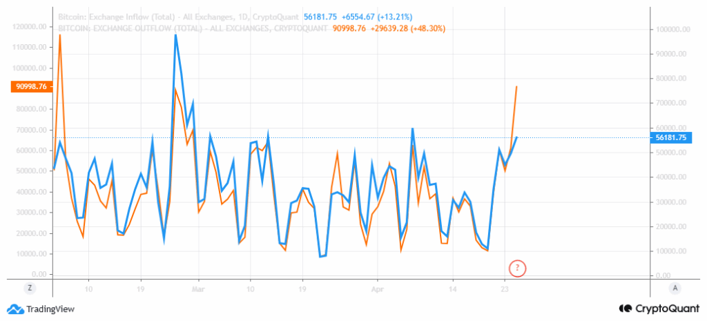 Exchange inflows in the last 24 hours hovered at $56,981 BTC wile outflows were notably higher at 90,998 BTC. In other words, exchange flows signaled significantly higher demand than sell pressure.