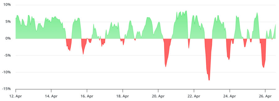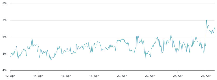 On April 26, the two-month Bitcoin futures premium (basis rate) rose to its highest level in seven weeks, indicating greater interest in bullish positions. At 6.5%, this metric remains within the neutral 5% to 10% range, but is moving away from bearish territory.